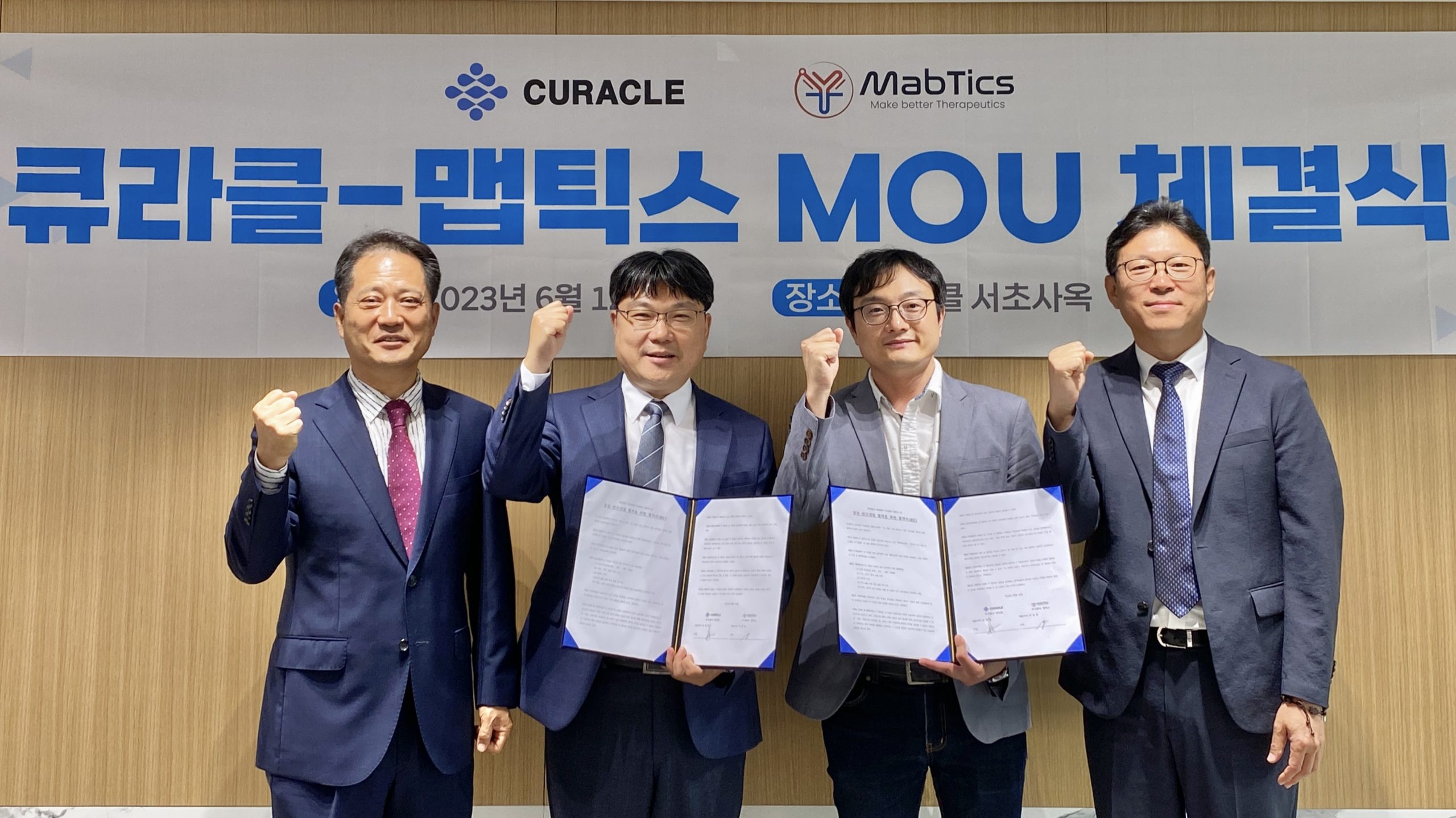난치성 혈관질환 신약개발 전문기업 큐라클이 항체 치료제 개발 기업인 맵틱스와 혈관내피기능장애 치료제 공동 연구개발 및 전략적 사업화를 위한 업무협약을 체결했다.