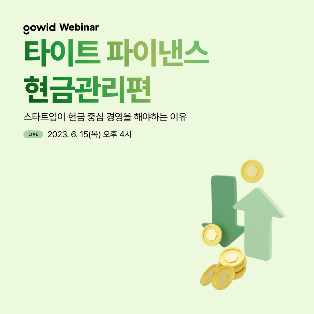 타이트 파이낸스는 엄격한 재무 관리와 자금 통제를 강조하는 개념으로, 고위드는 이번 웨비나를 통해 경직된 투자시장으로 자금 조달이 어려운 현 상황에서의 올바른 자금 관리 방안을 공유할 예정이다.