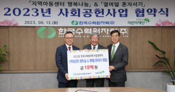 아동옹호대표기관인 초록우산어린이재단과 한국수력원자력㈜이 6월 13일 서울 중구 한국수력원자력 방사선보건원에서 ‘2023년 사회공헌사업 협약식’을 개최했다. 이번 협약은 2021년 최초 체결된 이래 초록우산어린이재단과 한국수력원자력㈜이 전국의 지역아동센터 및 아동 지원을 위한 ‘지역아동센터 행복나눔’ 사업과 자립준비청년의 건강한 자립을 돕는 ‘열여덟 혼자서기’ 사업을 성공적으로 추진하기 위해 3년째 지속되고 있다. ‘지역아동센터 행복나눔’ 에서는 생각 발전소, IT-Zone, 기초학습, 경험학습, SAFE-ZONE 등 다양한 프로그램 및 환경을 조성하여 아동들이 꿈을 키우며 성장할 수 있도록 지원할 예정이며, ‘열여덟 혼자서기’ 사업을 통해서는 자립준비청소년들을 위한 맞춤형 교육 및 프로그램을 통해 안정적인 사회 정착을 지원할 계획으로 이번 협약을 통해 양 기관은 앞으로도 아동들의 행복한 성장과 자립을 위해 더욱 긴밀히 협력하기로 했다. 한국수력원자력㈜ 황주호 사장은 “초록우산어린이재단과의 협약은 우리의 사회적 책임을 실천하는 좋은 기회이며, 아동들의 꿈을 이루기 위한 동반자로서 더욱 노력하겠다”며 “아동들의 안전하고 건강한 성장을 위해 다양한 방식으로 지원하는 데 최선을 다하겠다”고 말했다. 관련 기사 더보기 https://www.venturesquare.net/882158