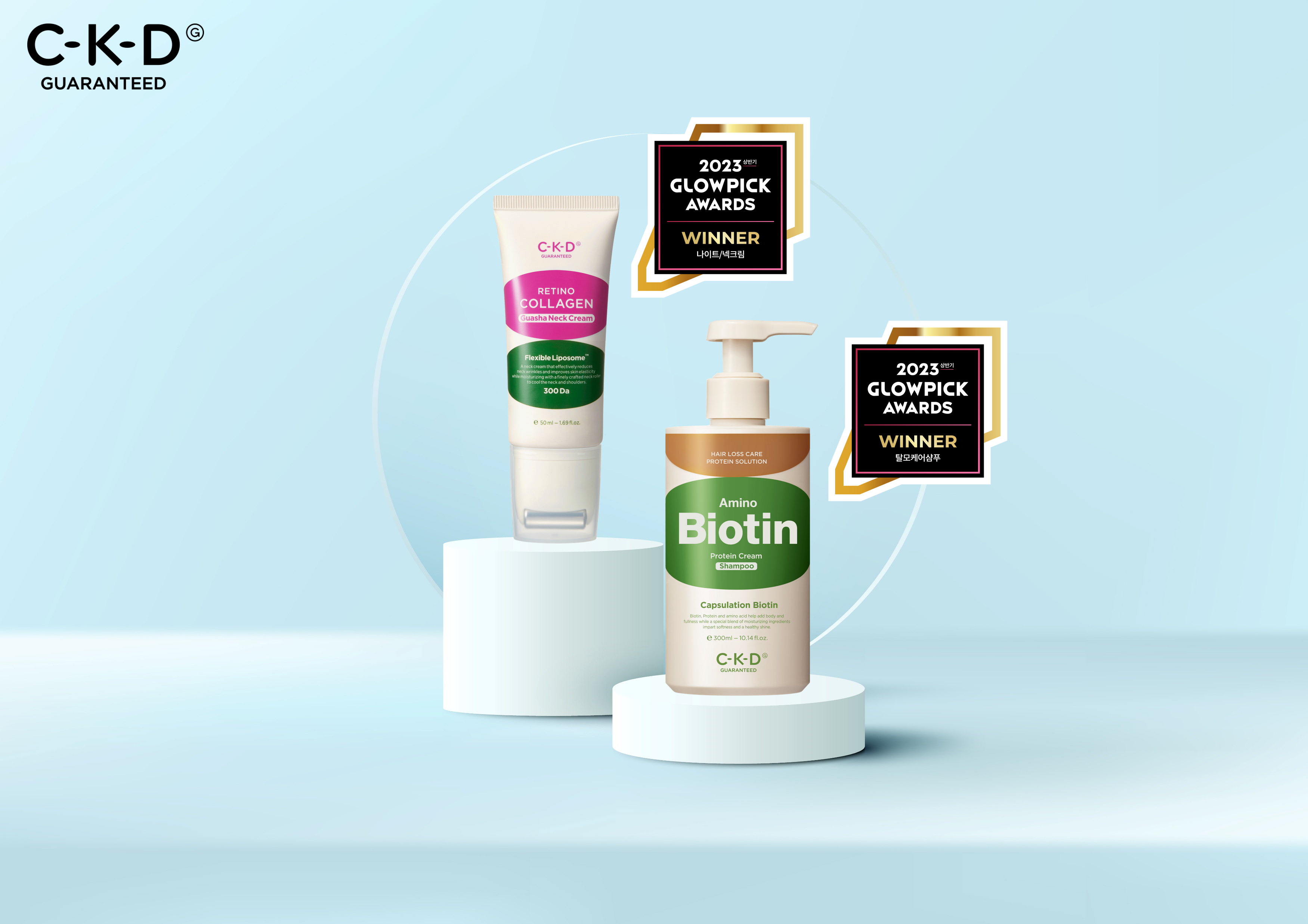 씨케이디 개런티드는 이번 어워드에서 레티노콜라겐 저분자300 ‘괄사 목주름크림’이 「나이트/넥크림 부문」 “위너” 제품 선정과 함께 아미노 비오틴 ‘단백질 크림샴푸’가 「탈모케어샴푸 부문」 “위너” 제품으로 선정되어 총 2개 부문에서 수상하는 성과를 이뤄냈다.