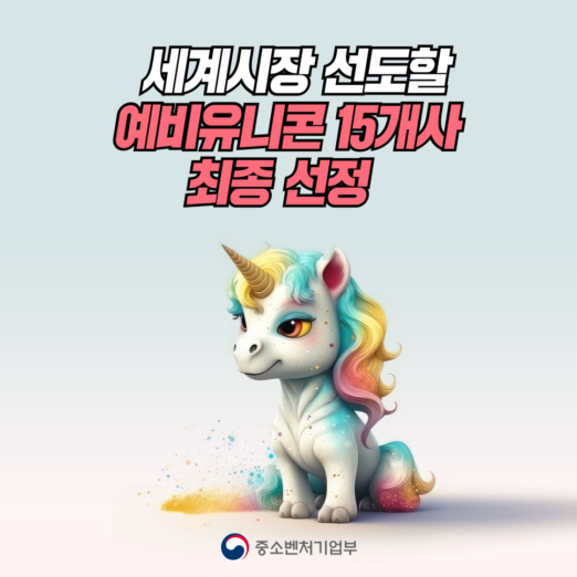 중소벤처기업부(장관 이영)가 ‘예비유니콘 특별보증’ 지원 대상기업 15개 사를 최종 선정했다.