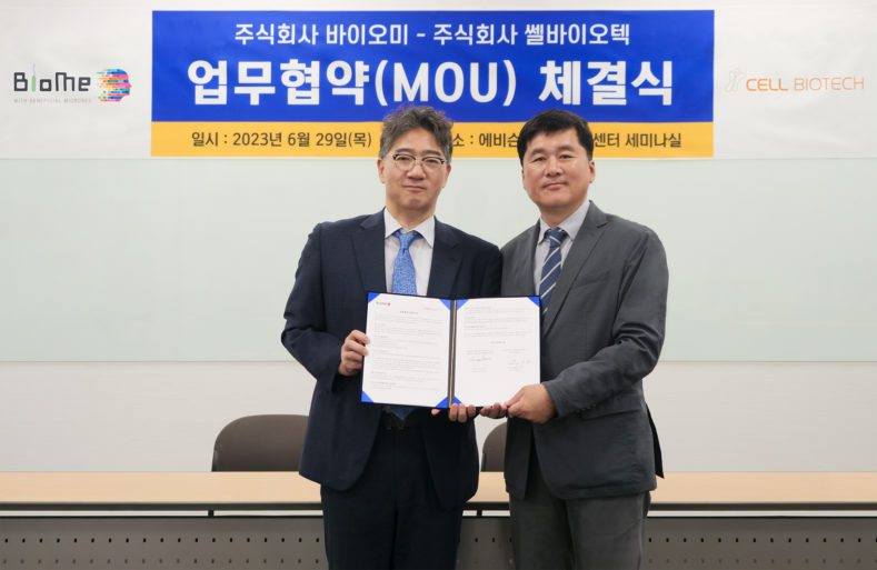 쎌바이오텍 정명준 대표는 “최근 FDA가 최초의 마이크로바이옴 치료제를 승인하며, 바이오 업계의 이목이 집중되고 있지만 아직 국내와 해외 기업 간 개발 격차가 크지 않고, 치료제의 작용 원리를 규명하고 상용화하는 데 있어 걸음마 단계에 있다”라며 “28년 동안 한국산 유산균만을 연구하며 다양한 임상 경험과 특허기술을 보유한 쎌바이오텍과 마이크로바이옴 신약개발에 새로운 길을 개척하고 있는 바이오미가 최고의 파트너로서 이뤄낼 성과들을 주목해 주시길 바란다”고 말했다.