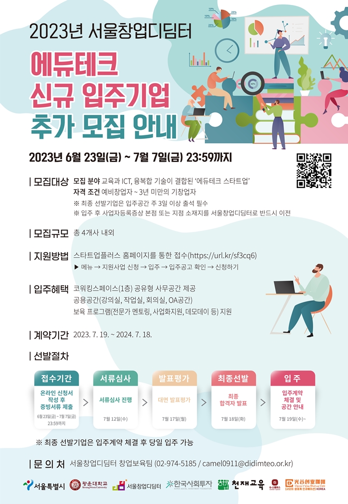 서울창업디딤터가 ‘에듀테크 챌린지’ 오픈이노베이션 입주기업을 추가 모집한다.