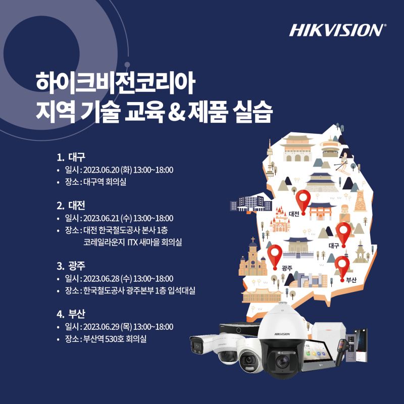 하이크비전코리아는 6월 20일부터 대구, 대전, 광주, 부산 순으로 국내 4개 주요 도시를 순회하면서 하이크비전 제품 사용자 및 파트너사 담당자들을 대상으로 자사 제품에 대한 교육과 실습의 기회를 제공하는 프로그램을 진행했다.
