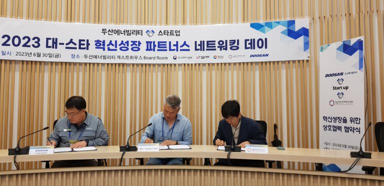 경남창조경제혁신센터(이동형 센터장)는 두산에너빌리티와 지난 6월 30일 두산에너빌리티 게스트하우스에서 스타트업의 혁신 성장을 돕는 업무 협약을 체결했다고 밝혔다. ‘2023 대-스타 혁신성장 파트너스’는 스타트업이 보유한 기술과 역량을 성장시키기 위해 대기업과 협업과제 해결을 추진하는 지원 사업이다. 지원 스타트업으로 선정된 한울항공기계, 딥인사이트, 볼트윈, 유로트레이딩네트웍스, 갓테크, 위히터, 앤디스티앤지, 오토콘테크, 한성테크 등 9개사는 경남창조경제혁신센터 및 두산에너빌리티와 함께 혁신 성장을 위한 상호협력 협약을 체결했다. 이번 지원 사업은 대기업의 개방형 혁신을 통해 스타트업과의 동반성장을 도모하는 오픈이노베이션(Open Innovation) 프로그램이다. 경남창조경제혁신센터와 두산에너빌리티는 지난 5월 10일부터 참여기업을 공개 모집하였으며, 서류 및 발표 심사를 통해 최종 9개 스타트업을 선정하였다. 선정된 과제는 ▲가스터빈 고온부품의 Instrumentation 기술개발 ▲전동지게차 스마트 안전사고 예방 솔루션 ▲AI기반 디지털 트윈 기술개발 ▲IOT기반 절삭유 청정 시스템 ▲초내열합금 소재 재활용 기술 ▲스마트한 Electric Heater ▲그루브조인트 기술 고도화 ▲2차 전지 보관창고 화재모니터링 시스템 개발 ▲수소스테이션용 오링 개발이다. 경남창조경제혁신센터와 두산에너빌리티는 9개 스타트업들에게 사업화 자금과 기술전문가 멘토링 등을 지원할 예정이다. 상호협력 협약식에서 경남창조경제혁신센터와 두산에너빌리티는 스타트업이 제시한 협업과제 해결을 위하여 기술개발과 제반 행정절차를 적극 지원하기로 하였으며, 스타트업은 보유 혁신기술과 아이디어를 활용하여 협업과제 해결을 위한 최선의 노력을 다할 것을 다짐하였다. 스타트업들은 협약식 후 두산에너빌리티의 홍보관 관람, Shop Tour 등에 참여하여 향후 진행할 사업 이해도를 높였다. 경남창조경제센터와 두산에너빌리티 관계자는 “좋은 아이디어와 기술력을 가진 스타트업이 많이 선정되어 기대가 크며, 두산에너빌리티 전문 멘토단과 함께 좋은 성과를 위해 노력해 줄 것을 당부한다. 올 연말 실시 예정인 성과공유회에서 좋은 결실을 가지고 다시 만날 수 있기를 희망한다”고 말했다. 관련 기사 더 보기 https://www.venturesquare.net/875546