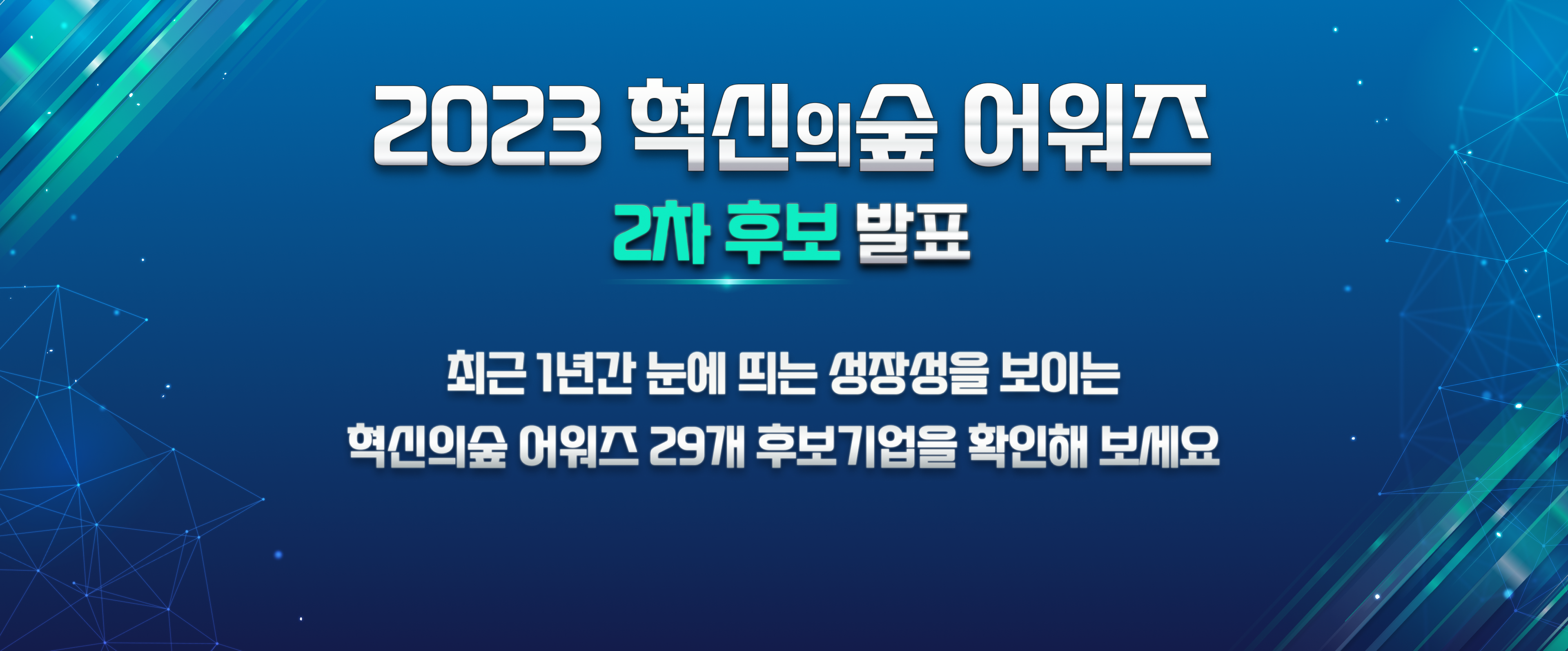 11일 새롭게 발표된 29개 기업의 2차 후보에 기존 선정됐던 1차 후보 26개 기업을 더해 2023 혁신의숲 어워즈 후보 기업은 55개로 늘었다. 오는 10월경 약 30개 기업을 3차 후보로 추가 선정한 뒤, 1차, 2차, 3차 후보로 선정된 기업 모두를 모아 그 중에서 높은 성장성을 보이는 기업을 최종 어워즈 수상 기업으로 선정하는 방식이다. 혁신의숲 어워즈는 대한민국의 건강한 스타트업 생태계의 발전과 창업가들을 응원하기 위해 한 해 동안 성장한 스타트업에게 특별한 부상과 함께 수상을 진행하는 시상식으로 2022년부터 시작돼 올해로 2회째를 맞이한다.