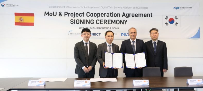 글로벌 XR(eXtended Reality, 확장현실) 테크 기업 버넥트가 지난 4일 스페인에서 칸타브리아 대학교 환경수리학 연구소(IHCantabria)와 프로젝트 협력 MOU를 체결했다. 버넥트는 오는 11월까지 스페인 칸타브리아 대학교 환경수리학 연구소(IHCantabria)의 수리실험 인프라를 디지털트윈(Digital Twin)으로 구축할 예정이다. 특히 연구소 설비 매뉴얼을 다양한 스마트기기와 함께 사용할 수 있도록 AR(Augmented Reality, 증강현실)매뉴얼로 제작하고, 실험실 인프라 및 콘텐츠를 클라우드 기반 디지털 플랫폼에 구축함으로써 확장성을 높일 계획이다. 칸타브리아 대학교 환경수리학 연구소(IHCantabria)는 칸타브리아 대학교와 칸타브리아 지방정부가 협력하여 만든 공동연구기관으로, 2007년에 설립됐다. 연구소는 UN의 지속가능발전목표(SDGs)에 기여할 수 있는 사회 생태학적 수자원 시스템의 통합 관리를 비전으로 기초 및 응용 연구, 기술이전, 교육 등을 담당하고 있으며 특히 기후변화, 해안침식, 해상풍력 등 해양분야에서 저명한 연구기관이다. 프로젝트를 총괄하는 버넥트 김경만 프로젝트매니저(PM)는 “한국의 ICT 기술을 대표하는 버넥트의 기술을 글로벌 시장에 적용할 수 있게 되어 매우 기쁘게 생각한다”며 “국내 최고의 XR 솔루션 전문 기업답게 스페인 연구소의 디지털트윈 플랫폼 구축을 시작으로 해외시장 진출의 교두보를 마련해 나가겠다”고 포부를 말했다. 관련 기사 더보기 https://www.venturesquare.net/885594