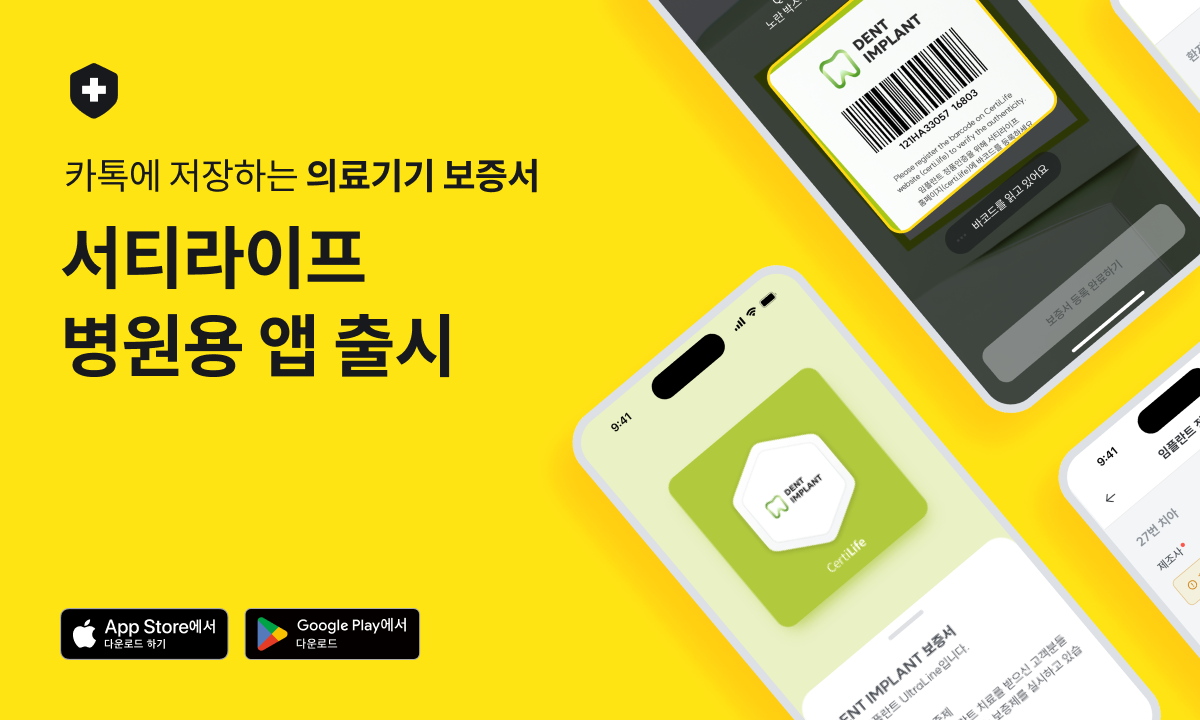 서티라이프는 웹 페이지를 통한 보증서 발행을 제공하고 있었으나 바쁜 병원 환경에 맞추어 의료기기의 바코드를 스캔하여 빠르게 보증서를 발행할 수 있는 병원용 앱을 개발했다. ‘서티라이프-병원용’ 앱으로 보증서를 발행하면 카카오톡 비즈 메시지로 보증서가 발송되고 별도의 앱 설치 없이 카카오의 블록체인 계열사 그라운드엑스가 개발한 블록체인 지갑 ‘클립’에 저장된다. 서티라이프는 치아 임플란트 보증서부터 시작하여 다양한 의료기기의 보증서를 발행할 수 있도록 서비스를 개선할 계획이다.
