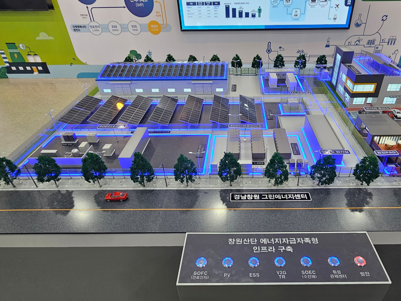 이번 홍보관 구축 사업은 산업단지공단, SK에코플랜트가 주관하는 연료전지, 태양광, ESS, V2G(Vehicle To Grid) 등 다양한 전력 설비들을 설치하고 해당 설비들이 유기적으로 운영될 수 있도록 통합에너지관리시스템을 구축하는 인프라를 일반인들이 쉽게 이해하고 전기 생산과 수요 등의 흐름을 한눈에 알 수 있도록 하는 목표로 했다. Vehicle To Grid는 전기차와 전력망을 연결해 전기차의 남은 전력을 활용하는 기술이다.