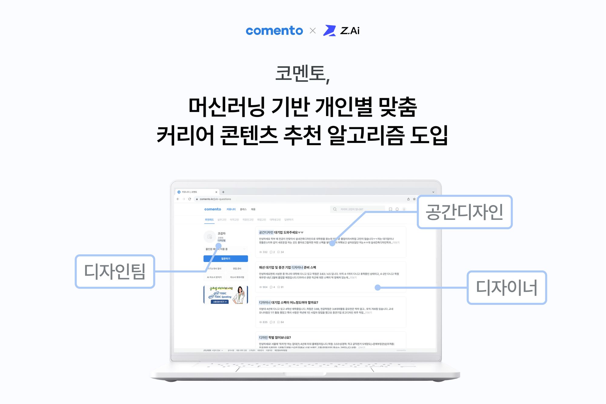 시작하는 사람들의 커리어 성장 커뮤니티 코멘토가 AI 기반 개인화 추천 솔루션을 제공하는 제트에이아이와의 협업을 통해 추천 알고리즘 서비스를 공동 개발 및 도입했다.