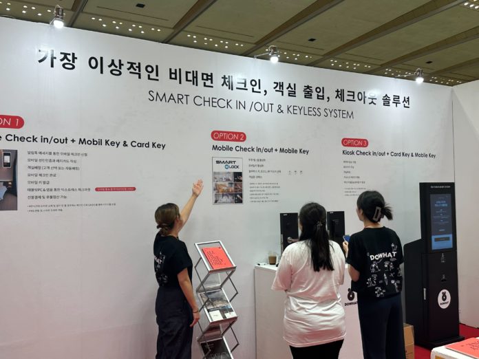 두왓은 ALL-IN ONE 스마트 호텔 컨설팅 기획관 내 실제 호텔 비대면 시스템 환경을 구현 ▲모바일 키 ▲모바일 체크인 ▲셀프 체크아웃은 물론 ▲컨시어지 ▲룸서비스 ▲맛집추천 ▲쿠폰발급 서비스 등을 선보였다.