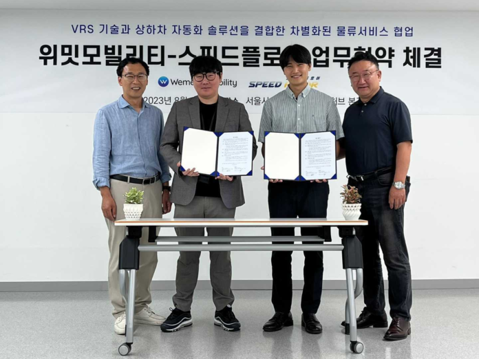 모빌리티 테크기업 위밋모빌리티(대표 강귀선)가 물류 자동화 모빌리티 솔루션 기업 스피드플로어(대표 홍현진)와 물류서비스 강화를 위한 업무협약을 체결했다고 16일 밝혔다.