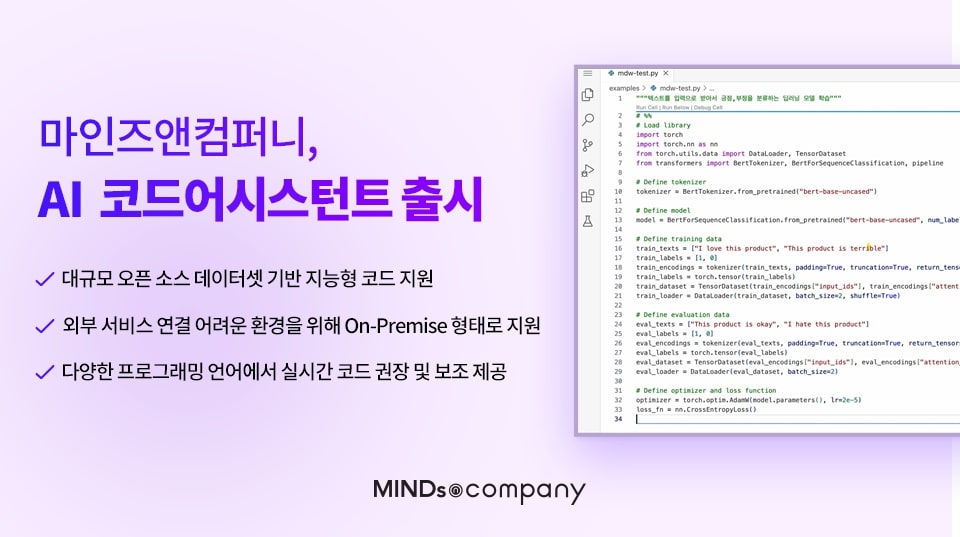 고석태 마인즈앤컴퍼니 공동대표는 “LLM이 대두되며 개발자의 업무 생산성을 높이는 코드 어시스턴트 어플리케이션에 대한 관심도 함께 높아졌다”며 “MNC 코드 어시스턴트는 글로벌 어플리케이션을 곧바로 활용하기 어려운 상당수의 국내 개발 업무 환경을 고려해, 동일한 성능을 더 안전한 환경에서 누릴 수 있도록 On-Premise 형태로 발 빠르게 개발한 어플리케이션”이라고 말했다.