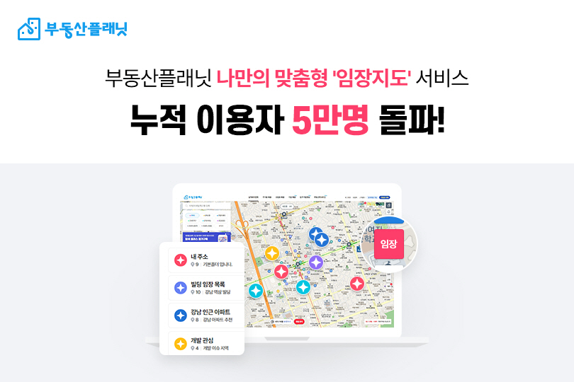 빅데이터 및 AI 기반 상업용 부동산 전문기업 부동산플래닛이 ‘임장지도’ 서비스의 누적 이용자 수가 5개월만에 5만명을 넘어섰다고 5일 밝혔다.