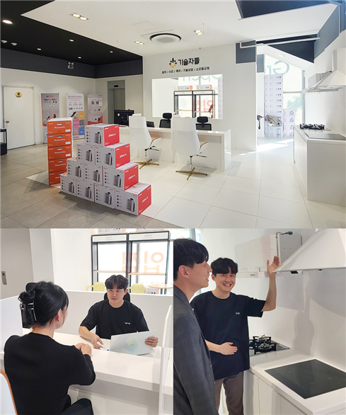 ‘기술자들’ 서비스센터에서는 전자랜드 매장 방문 고객에게 설치, 수리, 케어, 기술상담까지 토탈 서비스를 제공한다. 이후에는 직접 방문이 어려운 고객들을 위한 출장 방문 서비스를 통해 픽업 및 리턴 서비스도 제공할 예정이다. 또한 서비스센터 내 기술상담 공간을 마련하여 주방후드, 인덕션, 환풍기 등 고객이 직접 체험해 보고, 전문가의 상담과 케어 서비스도 경험할 수 있다.