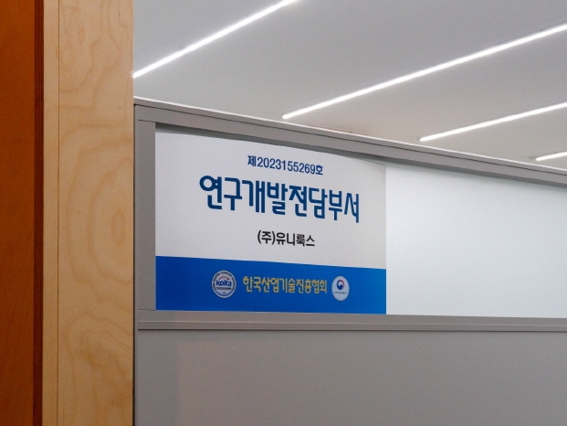 유니룩스, 한국산업기술진흥협회 연구개발전담부서 인정서 획득