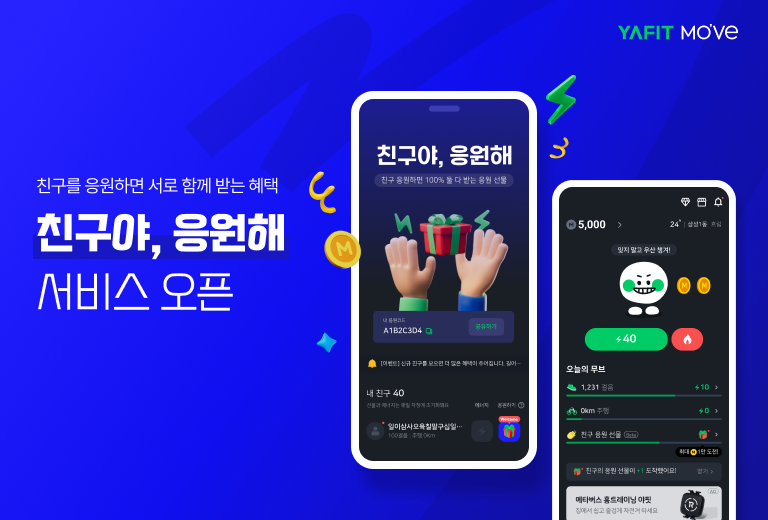 운동, 교육 중심 메타버스 기업 ㈜야나두(공동대표 김정수, 김민철)가 걷기와 라이딩 등 모든 움직임에 대해 현금처럼 사용할 수 있는 마일리지를 지급하는 ‘야핏무브’에 친구 응원하기 기능을 새롭게 선보였다.