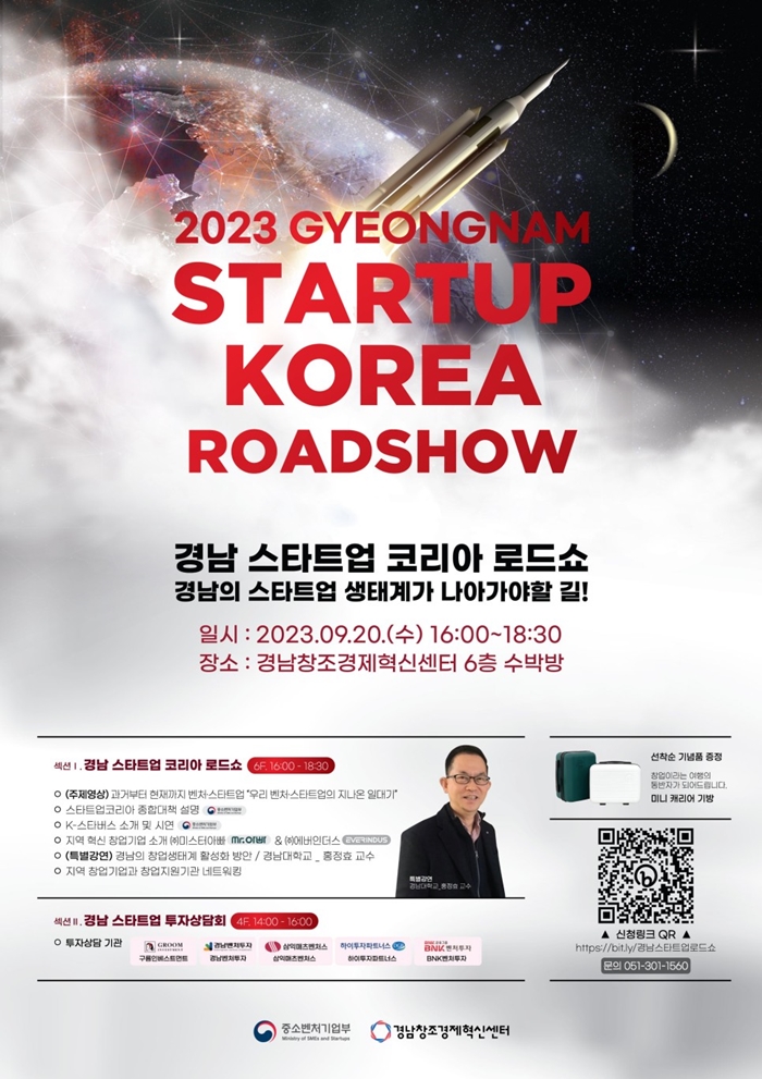 중소벤처기업부 경남지방중소벤처기업청(청장 최열수)과 경남창조경제혁신센터(센터장 이동형)는 글로벌 창업대국으로의 도약을 위한 ‘경남 스타트업 코리아 로드쇼’를 20일 경남창조경제혁신센터 개최했다고 밝혔다.