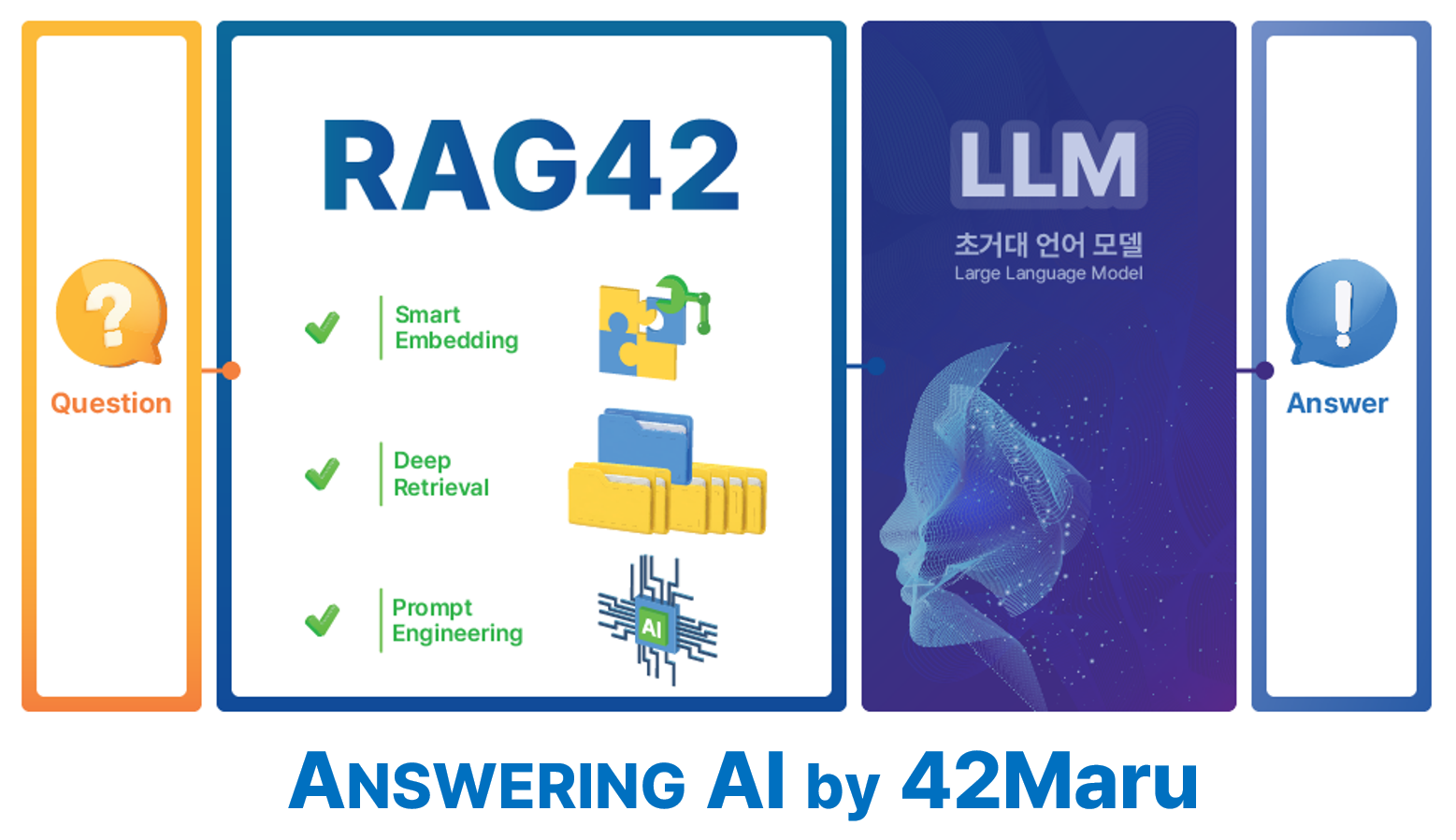 앤서링 AI(Answering AI) 스타트업 포티투마루(42Maru)가 9월25일부터 27일까지 3일간 삼성동 코엑스에서 진행되는 대한민국 디지털 미래혁신대전 2023에서 검색 증강 생성 기술이 적용된 RAG42를 공식 출시한다.