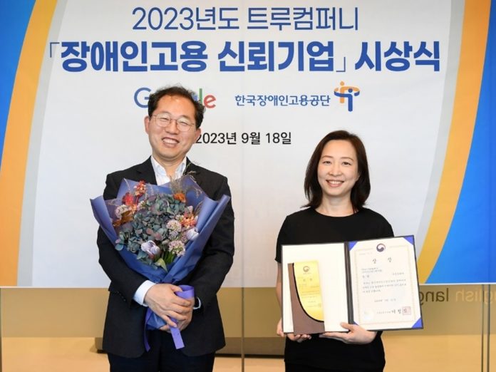 구글코리아가 고용노동부와 한국장애인고용공단이 주관하는 ‘2023년 트루컴퍼니(장애인고용 신뢰기업)’에 선정돼 고용노동부 장관상을 수상했다.