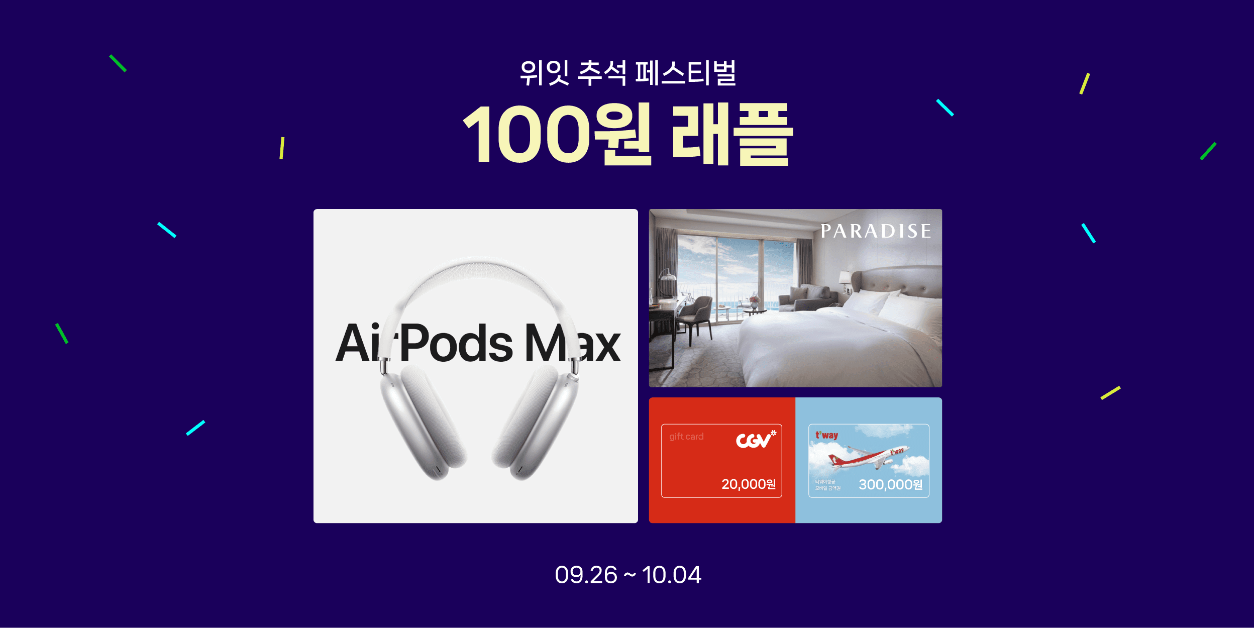 이번 ‘위잇 추석 페스티벌 – 소원을 빌어본달(9.26~10.4)’ 프로모션에는 100원 래플과 특별 할인 기획전이 준비되어 있다.