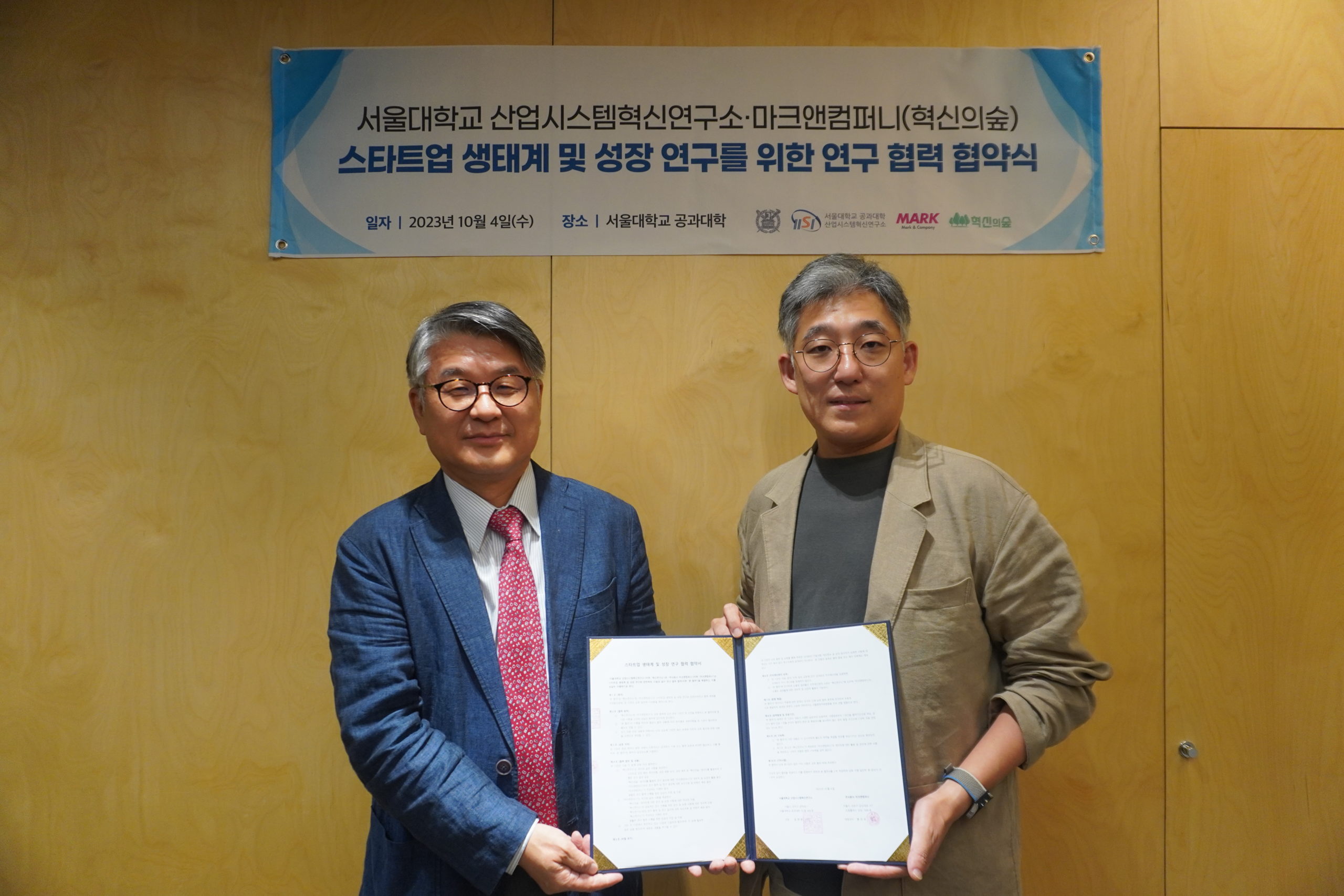 서울대학교 산업시스템혁신연구소와 스타트업 성장분석 플랫폼 ‘혁신의숲’을 운영하는 마크앤컴퍼니가 스타트업 생태계 및 성장을 보다 심도 있게 연구하기 위해 4일 업무협약을 체결했다.