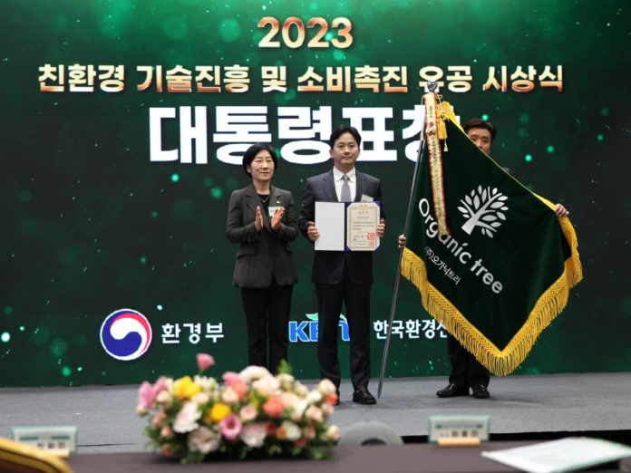 천연벽지 전문 제조기업 ㈜오가닉트리가 지난 12일 ‘2023 친환경 기술진흥 및 소비촉진 유공’ 포상에서 녹색기술 부문 대통령 표창을 수상했다고 13일 밝혔다.