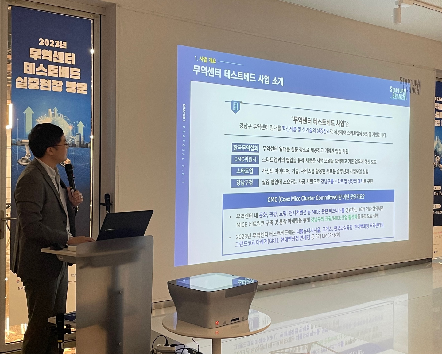 실증현장 방문에는 한국무역협회 관계자와 강남구의회 의원 및 강남구 관계자들을 비롯해 실증대상 스타트업, CMC 위원사 등이 참석한다. 지난 7월 동 사업에 선정된 스타트업 13개사는 오는 11월 말까지 무역센터 곳곳에서 자사의 기술과 제품을 검증하기 위한 실증을 진행하게 된다.