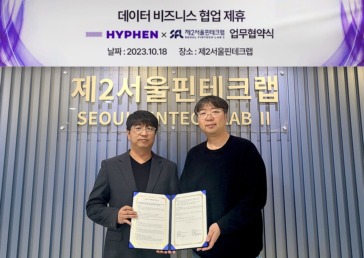 ㈜하이픈코퍼레이션(이하 하이픈)이 ‘제2서울핀테크랩’과 업무협약을 체결하고 핀테크 스타트업의 성장 지원에 나선다.