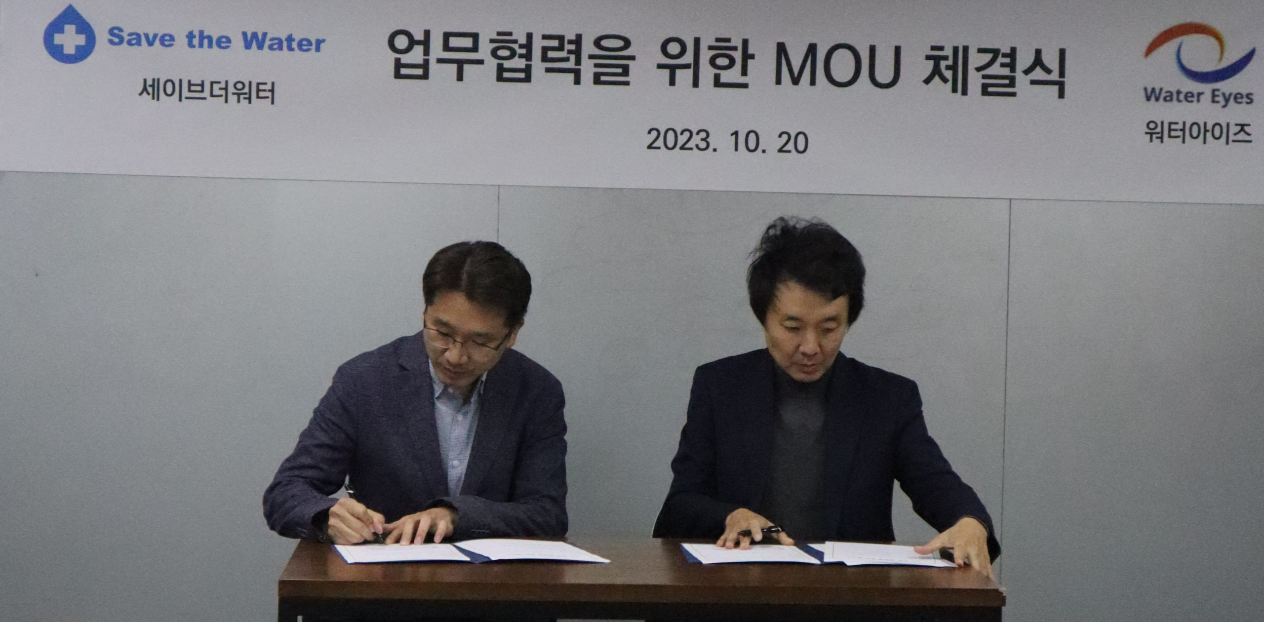 워터아이즈가 세이브더워터와 개도국의 식수정수설비를 구축하고 식수위생사업을 위한 업무협약식을 진행했다.