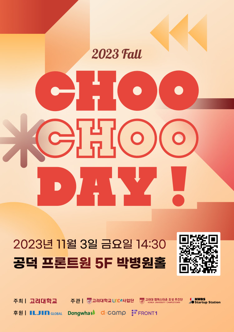 고려대학교(총장 김동원) 경영대학은 오는 11월 3일 부설기관인 스타트업 연구원의 ‘2023 Fall 츄츄데이’를 공덕 프론트원에서 개최한다고 밝혔다. 이번 행사는 고려대학교 LINC 3.0 사업단과 공동으로 개최하여, 캠퍼스 중심 창업 생태계 활성화와 학생창업기업의 투자유치 역량 강화 지원을 위해 마련됐다.