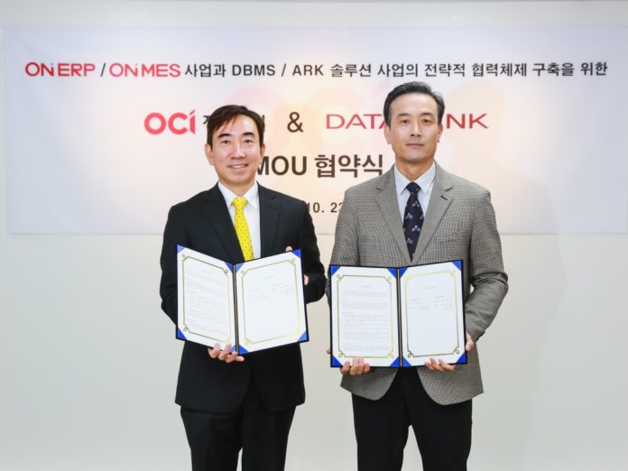 DBMS 및 업무연속 솔루션 전문기업 ㈜데이타뱅크(대표 이혁재)가 경영혁신 솔루션 기업 OCI정보통신(대표 김광호)과 함께 ‘아크(Ark)’ 솔루션 등 기업 제조 및 업무 솔루션의 시장 확대를 위한 MOU를 체결했다고 밝혔다.