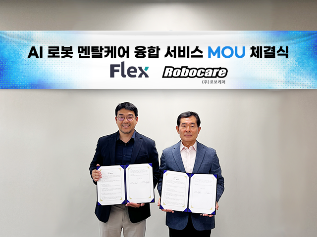 멘탈케어 전문기업 ㈜플랙스(대표 윤순일)가 ㈜로보케어(대표 문전일)와 ‘로봇 및 인공지능 시장 진출’에 대한 업무 협약서(MOU)를 체결했다고 24일 밝혔다.