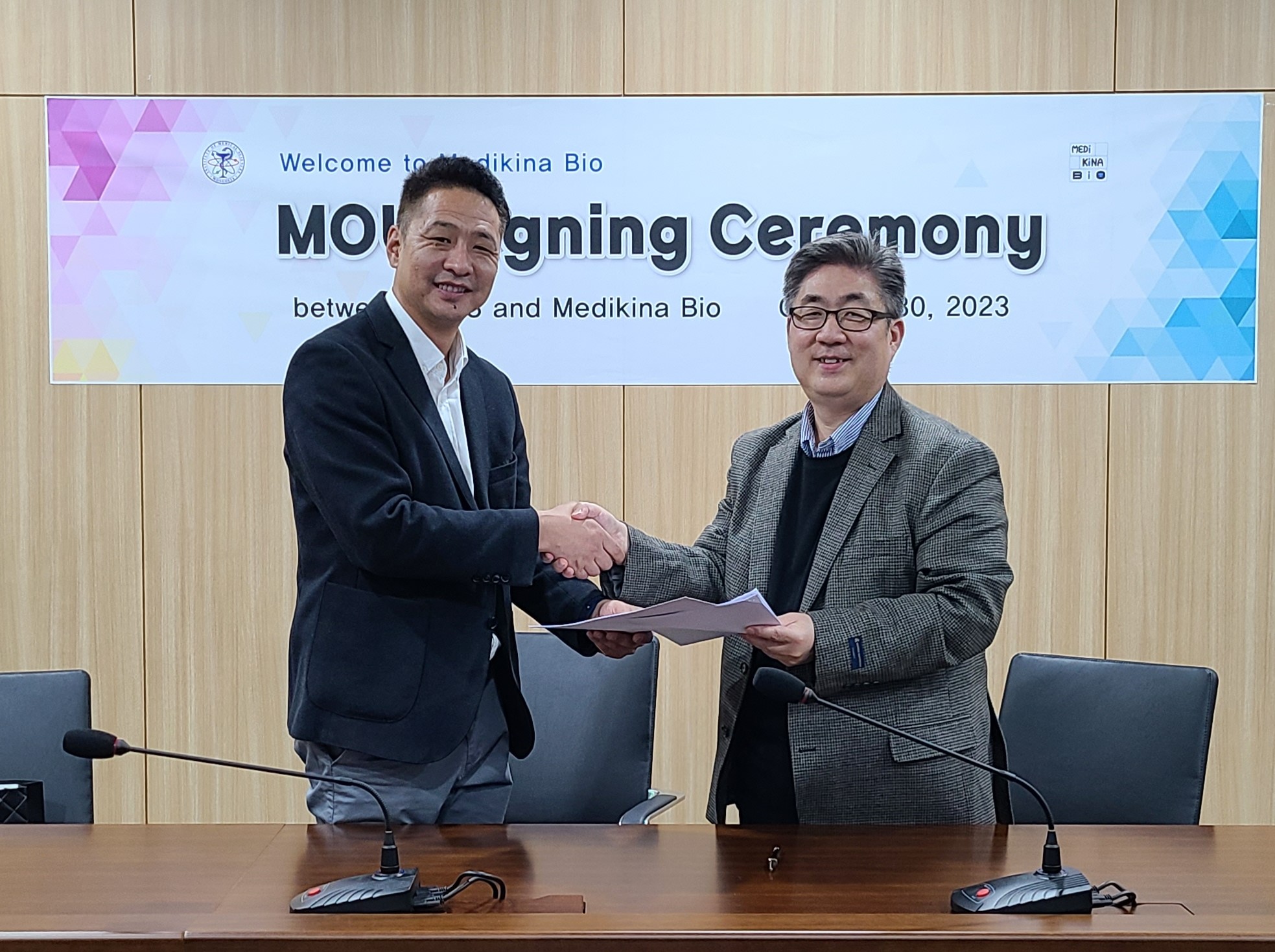 메디키나바이오가 새로운 간암 바이오마커가 적용된 간암 체외진단 의료기기의 인체 적용을 위한 임상시험을 몽골 국립의학연구소와 국제공동임상시험을 위한 2023년 10월 30일 경기창조경제혁신센터 창업존에서 양해각서를 체결했다.