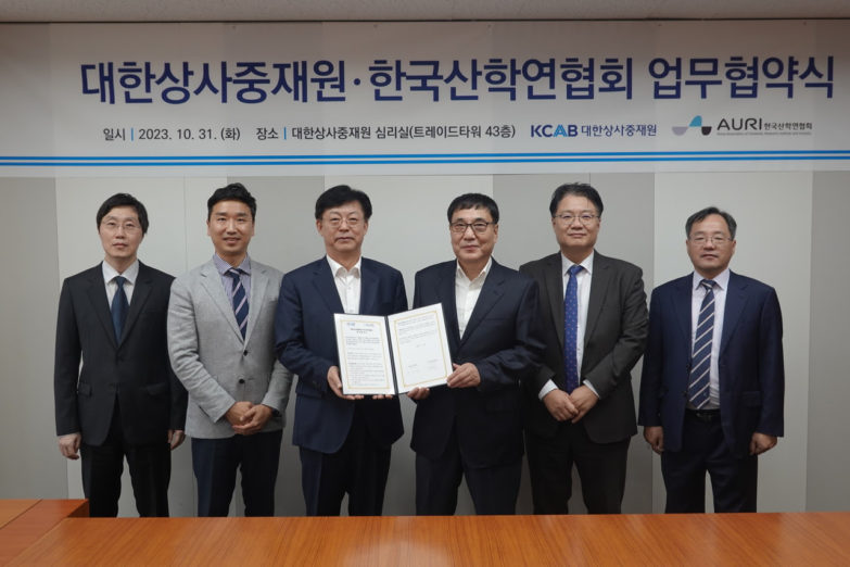 대한상사중재원(원장 맹수석, 이하 중재원)한국산학연협회(회장 조동욱, 이하 산학연)는 지난 10월 31일서울 삼성동 트레이드타워에 위치한 중재원 조정실에서 업무협약을 맺고 양 기관의 협력 강화를 약속했다.