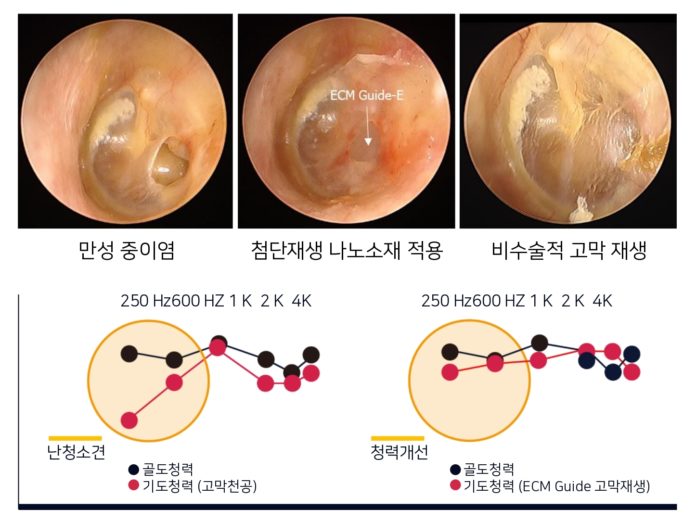 만성 고막천공은 중이염과 같은 질환을 통해 발생한 고막 내 천공이 지속되는 질환으로 자연적으로 치유되지 않으며 청력 손상을 유발한다. 현재 치료방법으로는 고막성형술과 같은 수술적 치료법만 있는데, 고가의 비용은 물론 전신마취 등 복잡한 과정이 요구되며 치유 기간 역시 길다.