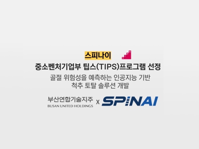 스피나이는 이번 팁스(TIPS) 프로그램에 최종 선정돼 2년간 최대 7억원의 연구개발 자금과 사업연계지원, 해외 마케팅 등의 지원을 받는다. 이번 팁스 선정은 스피나이의 투자사이자 팁스 운영사인 부산연합기술지주(대표 박훈기)의 추천으로 이뤄졌다.