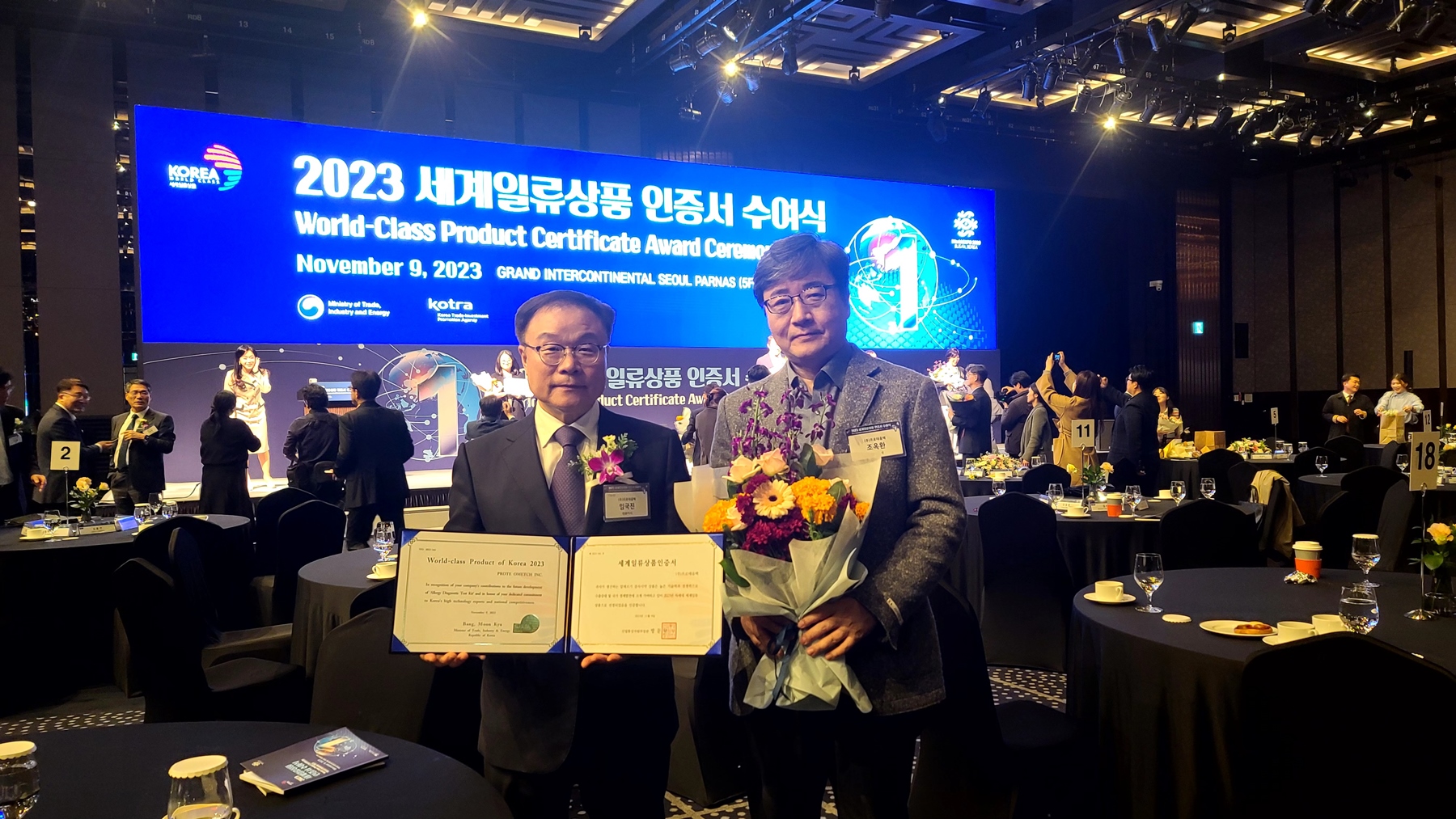세계일류상품은 세계시장에서 경쟁력을 갖춘 상품을 발굴∙육성해 기업 경쟁력을 높일 수 있도록 현재 혹은 향후 7년 이내에 세계시장 규모가 연간 5000만 달러 이상, 세계시장 점유율 5위 이내에 들어갈 수 있는 우수한 제품을 인증하는 제도다. 임국진 프로티아 대표는 지난 9일 서울 그랜드 인터컨티넨탈에서 개최된 세계일류상품 인증서 수여식에 참여했다.