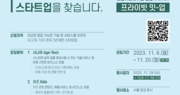 부산창조경제혁신센터가 대교와 함께 B.Startup 오픈이노베이션 챌린지 2023, ‘프라이빗 밋-업’에 참가 할 스타트업을 오는 11월 20일까지 모집한다. 모집대상은 대교와 협업 가능한 기술 및 서비스를 보유하고 있는 전국 소재 7년 미만 스타트업으로 행사는 오는 11월 29일, 서울 대교 본사에서 개최된다. 이번 행사는 ▲시니어 Age-Tech(시니어의 삶의 질을 향상시킬 수 있는 기술/서비스 및 이에 기반한 비즈니스 모델) ▲키즈 Kids (키즈 관련 콘텐츠, 제품/서비스 및 비즈니스 모델) ▲기타 (수요분야 외 혁신적인 기술/서비스 및 비즈니스 모델) 자유주제로 대교와 함께 개방형 혁신에 기여하고 지속가능한 협업 모델을 구축할 스타트업을 모집한다. 최종 선정된 스타트업은 대교 현업부서 담당자와의 1대1 미팅을 통해 직접적으로 협업을 제안할 수 있는 기회가 제공되며 자세한 내용은 부산창경 홈페이지 공지사항을 통해 확인할 수 있다. 부산창경 이유미 PM은 “대교와는 첫 오픈이노베이션 프로그램을 함께하는 만큼 내년에도 다양한 주제로 많은 스타트업과의 만남의 장 열어 갈 계획이다”라며, “앞으로도 적극적인 오픈이노베이션 활동을 통해 혁신적이고 창의적인 스타트업과 상생 협력 모델을 만들어 나가겠다”라고 밝혔다. 관련 기사 더보기 https://www.venturesquare.net/902377