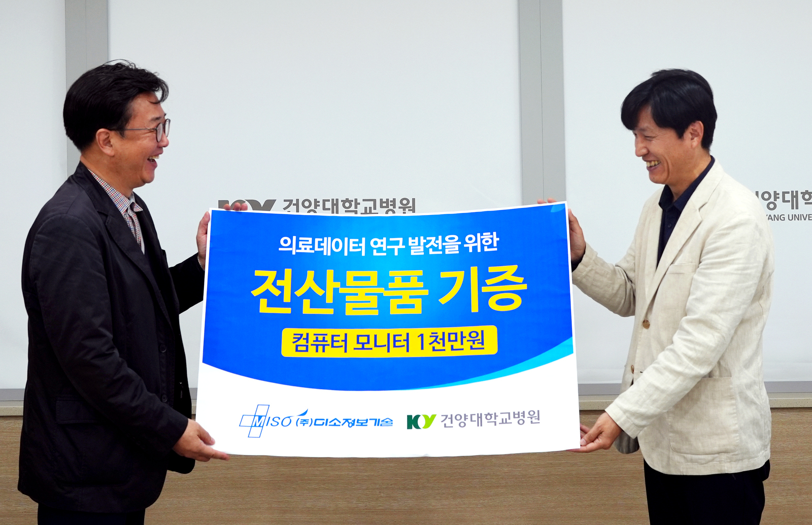 AI기반 의료 빅데이터 플랫폼(Data Lakehouse)전문기업 미소정보기술이 대전 건양대학교병원 발전과 의료데이터 연구를 위해 기부물품 전달식을 진행했다.