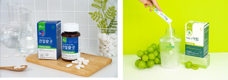건강기능성 식품 브랜드 미토스 플렉스(Mitos Flex)의 관절•연골 건강관리를 위한 관절愛굿(Mitos Joints Flex) MSM&NAG와 근력 운동시 운동력 향상에 도움(근육과 에너지) 미토스더힘 Mitos power Flex는 식약처 인정 건강기능성 제품으로 중국 수출을 위한 협의와 미국 진입을 위한 FDA 등록 프로세스가 진행 중이며, 이번 박람회를 시작으로 내년 국제 박람회 참가를 순차적으로 참가해 글로벌 시장 개척도 함께 진행할 것이라고 관계자는 전했다.