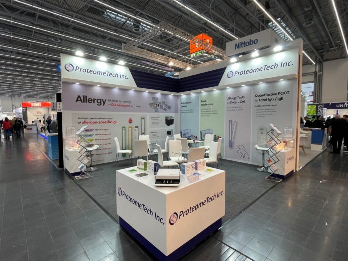 프로티아는 이번 전시회에서 주력제품인 인체용 알레르기 다중진단키트 ‘프로티아 알러지-Q’을 방문객들에게 소개했다. 특히 당사의 특허기술이 접목된 세계 최다 라인형 다중진단 기능으로 정확하고 효율적, 경제적인 검사가 가능하다는 제품의 장점을 방문객들에게 설명했다. 현재 프로티아는 118종(프로티아 알러지-Q 128M)의 알레르기 유발 물질을 검사할 수 있는 진단키트를 국내∙해외시장에 공급하고 있다.