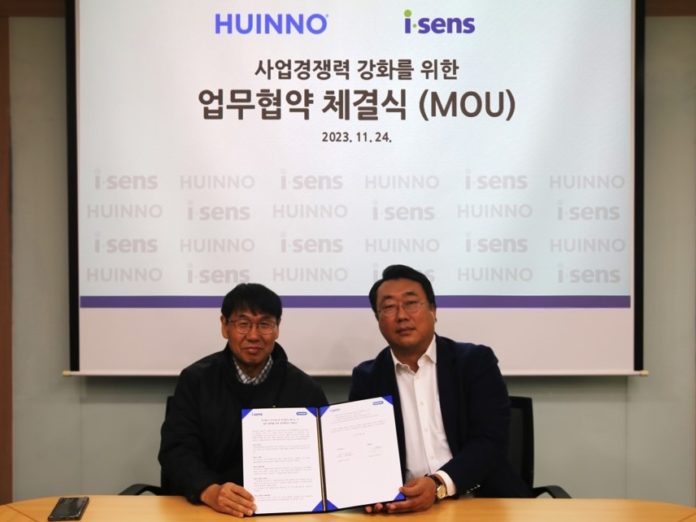 디지털 헬스케어 선도 기업 ㈜휴이노(대표이사 길영준)가 글로벌 진단 전문기업 ‘아이센스’와 상호 사업 경쟁력 강화를 위한 업무협약(MOU)을 체결했다고 27일 밝혔다.