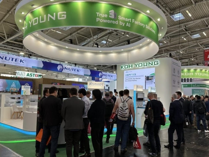 수상의 영예를 안은 고영의 전시 공간에는 각국에서 온 수백 명의 방문객으로 인산인해를 이뤘다. 고영은 방문객을 대상으로 차세대 부품 실장 검사장비 ‘Zenith 2 UHS’를 처음 선보였다. 신규 광학계 탑재로 고속 검사가 가능해 대량 양산이 필요한 자동차산업 고객사들로부터 호평받았다.