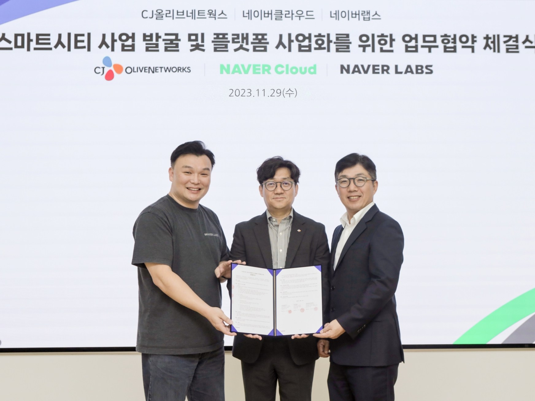 네이버클라우드(대표 김유원), 네이버랩스(대표 석상옥)가 CJ올리브네트웍스(대표 유인상)와 스마트시티 사업 공동 개발을 위해 협력한다. 3사는 29일 네이버 제2사옥 1784에서 ‘스마트시티 사업 공동발굴 및 플랫폼 사업화를 위한 양해각서’를 체결했다. 이번 협약을 통해 3사는 ▲국내외의 스마트시티 사업 기회를 공동으로 발굴·추진 ▲디지털트윈 기반의 스마트시티용 플랫폼(도시 관리, 로봇, AR 등)의 사업화 발굴 및 추진 ▲각 사의 기술과 역량을 융합해 스마트시티용 서비스와 솔루션을 개발 및 제공하는 등 스마트시티 사업 발굴과 플랫폼 사업화를 위해 협력하기로 했다. 네이버클라우드는 스마트시티를 위한 ICT인프라가 네이버 클라우드 플랫폼을 통해 안정적으로 운영될 수 있도록 지원한다. 또한 국내외의 스마트시티 기회를 발굴하고 지원하며 스마트시티 사업의 주도권을 확보할 계획이다. 네이버랩스는 자체 개발한 인공지능 기반의 디지털트윈 개발 솔루션인 ‘어라이크(ALIKE)’, 네이버 클라우드 플랫폼과 5G 기반의 자율주행 서비스 로봇 ‘루키(Rookie)’ 등 자사가 보유한 디지털트윈·로봇 기술을 제공한다. 네이버클라우드와 네이버랩스는 국내 최초 로봇친화형 건물 ‘1784’를 통해 디지털트윈·로봇·AI 등의 기술이 집약된 플랫폼형 사옥을 선보인 바 있다. CJ올리브네트웍스는 스마트시티 사업과 관련된 서비스를 기획 및 제공하고 스마트시티를 위한 디지털트윈에 적용될 각종 콘텐츠를 지원한다. 세종·부산 국가시범도시를 총괄했던 스마트시티 분야 전문가 유인상 대표 등 회사가 보유한 기술과 역량을 활용해 국내외 스마트 시티 사업 기회 발굴에도 나선다. 네이버클라우드 김유원 대표는 “팀네이버가 보유한 고도화된 AI 기술과 이를 안정적으로 운영할 수 있는 네이버 클라우드 플랫폼을 활용해 스마트시티 사업 발굴에 적극 나서겠다”고 밝혔다. 네이버랩스 석상옥 대표는 “네이버랩스는 사람과 공간을 연결할 수 있는 디지털트윈 기술을 이미 보유하고 있다”며 “스마트시티에 필요한 도시 관리 시스템이나 로봇, 자율주행 기술을 융합시켜 스마트시티 구축에 활용될 수 있도록 하겠다”고 전했다. CJ올리브네트웍스 유인상 대표이사는 “DX와 데이터를 기반으로 공간과 일상변화를 선도하여 라이프스타일 혁신을 만들어 나가기 위해 향후 스마트시티 사업을 적극적으로 발굴해 나가겠다”며 “네이버클라우드가 보유한 플랫폼, 네이버랩스의 기술력 등과 결합해 스마트시티 사업 시너지가 기대된다”고 말했다. 한편 네이버클라우드는 CJ올리브네트웍스와 ‘하이퍼클로바X’의 사업 협력을 위한 협약을 추가로 체결했다. CJ올리브네트웍스는 하이퍼클로바X의 우선 협력 파트너로 고객 맞춤형 하이퍼클로바X 기술 서비스를 제공하고, 네이버클라우드와 함께 기술을 협력하고 제휴 사업의 공동 운영에 나설 계획이다. 관련 기사 더 보기 https://www.venturesquare.net/904539