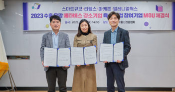 실내 공간 디지털 전환 전문기업 ㈜티랩스(이하 티랩스)가 국내 메타버스 기업인 ㈜마케톤, ㈜밀레니얼웍스, ㈜스마트큐브 (이하 마케톤, 밀레니얼웍스, 스마트큐브) 등 3개 기업과 함께 다자간 전략적 사업 협력 MOU를 체결했다. 티랩스는 정보통신산업진흥원(NIPA)이 주관하고 KAIT가 수행한 '2023 수출 유망 메타버스 강소기업 육성사업' 참여를 통해 다양한 지원 프로그램에 참여하면서 다른 메타버스 기술기업들과 사업적 협력을 모색하게 됐으며, 이 과정에서 각 회사의 기술과 인프라를 활용한 상호협력 체계 구축 및 메타버스 생태계의 발전과 확장을 위한 공동의 노력에 각 기업 대표들이 뜻을 모으면서 다자간 업무협약을 체결하게 됐다. 이번 업무협약 참여 기업들은 최근 메타버스 산업 전반에 대한 관심도가 예전보다 감소하고 있는 중에도 독창적인 기술과 신규 솔루션 개발로 여전히 큰 경쟁력을 갖고 있다는 평가를 받고 있는 기술 강소기업들이다. 협약에 참여한 스마트큐브는 실사 그래픽을 기반으로 하는 ‘WILLLD(월드)’ 메타버스 플랫폼을 활용하여 실감형 가상관광 서비스를 제공하고 있으며 마케톤은 디스플레이 디바이스 크기에 구애받지 않는 ‘호버링 홀로그램 기술’을 통해 새로운 메타버스 경험을 제공하고 있다. 밀레니얼웍스는 3D 캐릭터와 메타버스 가상공간을 활용한 XR 라이브커머스 및 라이브콘텐츠를 선보이고 있는 디지털 콘텐츠 기업이다. 이번 업무협약식에 참석한 티랩스 황병구 대표는 “현재의 디지털 트윈 서비스가 단순한 AR, XR 가상공간 구현을 넘어 클라우드 컴퓨팅이나 생성형 인공지능과 같은 여러 기술이 결합한 형태로 진화할 것이 분명하게 예상되는 시점에, 다양한 분야에서 경쟁력과 기술력을 인정받고 있는 마케톤, 밀레니얼웍스, 스마트큐브 등 메타버스 기술 강소기업들과 협업하게 된 것은 매우 의미있는 일이다”라며 “앞으로 티랩스의 선도 기술이 국내시장은 물론 해외시장까지 본격적으로 진출할 수 있도록 여러 파트너사들과의 기술 협력 및 인프라 공유를 위해 지속적으로 노력하겠다”라고 말했다. 관련 기사 더보기 https://www.venturesquare.net/888902