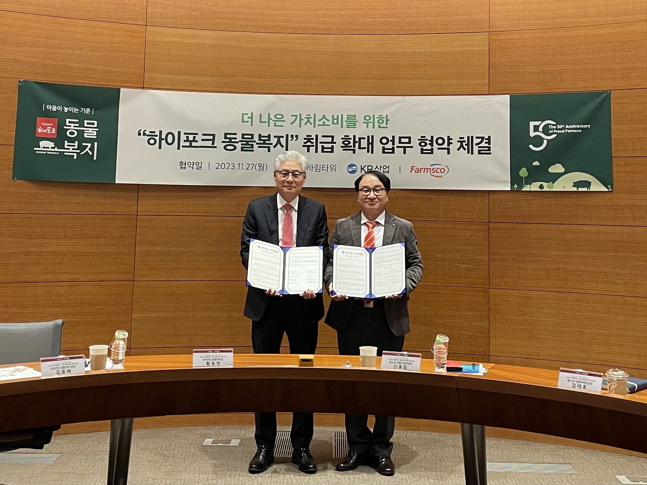 축산전문기업 ㈜팜스코가 ㈜KR산업과 업무협약을 체결하고 전국 휴게소 내에 ‘하이포크 동물복지’ 메뉴를 론칭한다.