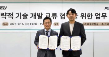 무인 이동체 자율군집제어 전문 기업 파블로항공(대표 김영준)은 지난 6일 경기도 안산시에서 무인기 설계 제조 및 항전부품개발 전문기업 ㈜프리뉴(대표 이종경)와 ‘전략적 개발 교류 협력을 위한 업무협약(MOU)’을 체결했다고 7일 밝혔다. ㈜프리뉴 본사에서 진행된 이번 협약식에는 김영준 파블로항공 대표와 이장철 사업부사장, 임승한 기술부사장, 김준영 운영이사, 유동일 기술본부장, 이종경 ㈜프리뉴 대표이사, 김제중 이사, 가충희 연구소장, 정용범 이사, 김영수 이사가 참석했다. ㈜프리뉴는 차별적 기체 설계기술과 자체 생산 체계를 통해 산업용 UAV, 핵심 항전부품, 관제시스템 운용, 서비스용 플랫폼을 제공하는 기업으로, 지난해 드론 기업 최초로 산업통상자원부 소재부품기술개발사업에 선정되어 D-DMB(Drone Main Board) 개발을 완료한 바 있다. 양사는 이번 업무협약을 통해 상호 보유한 핵심 기술력으로 제품 및 서비스를 고도화하고, 국내외 드론 산업과 기술 발전에 기여하기 위해 협력할 방침이다. 주요 협약 내용은 ▲양사 드론 시스템 개발을 위한 상호 협력 ▲파블로항공 3D 통합관제 기능에 대한 ㈜프리뉴 드로닛 플랫폼 적용 및 활용 등이다. 이종경 ㈜프리뉴 대표는 “양사가 현재 개발 중인 주요 기술을 전략적으로 교류하여 국내 사업 확장과 해외 시장 진출의 교두보가 될 것으로 기대한다”라고 전했다. 김영준 파블로항공 대표는 “이번 협약을 기반으로 ㈜프리뉴와 시너지를 창출할 협력적인 연구를 진행하고 더욱 발전한 제품과 서비스를 선보일 수 있을 것으로 기대한다”면서 “양사 모두 드론 및 무인 이동체 분야에서 선도적인 기술력을 확보하여 경쟁력을 강화하는 계기가 되길 바란다“고 밝혔다. 한편 파블로항공은 지난달 UAM 교통관리플랫폼 ‘어반링크X(UrbanLinkX)’로 스마트시티 부문에서 CES2024 혁신상을 수상해 기술력을 입증했다. 내년 CES 2024 전시회에 참가하여 파블로항공의 독보적인 공연용 드론 기체를 홍보하고 드론과 드론쇼의 해외 진출을 본격화할 예정이다. 관련 기사 더 보기 https://www.venturesquare.net/899909