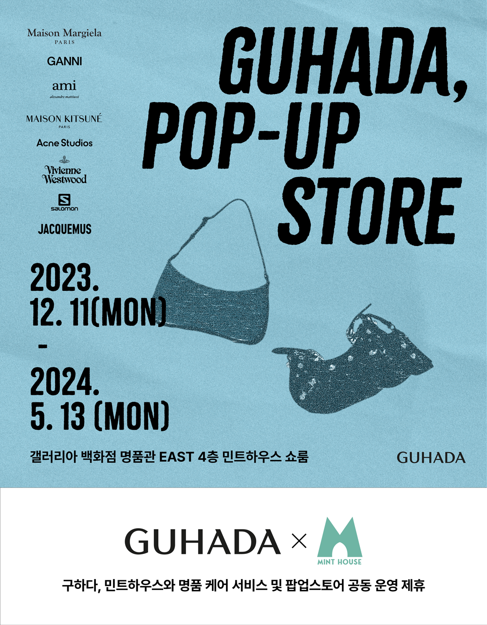 구하다와 민트하우스가 협업한 팝업스토어는 2023년 12월 11일부터 2024년 5월 13일까지 약 6개월간 갤러리아 백화점 명품관 EAST 4층 민트하우스 쇼룸에서 진행된다. 고객들은 유럽 부티크에서 직배송된 럭셔리 하우스 및 컨템포러리 브랜드 인기 상품을 백화점 정가 대비 30~40% 이상 할인된 가격에 만나볼 수 있다.