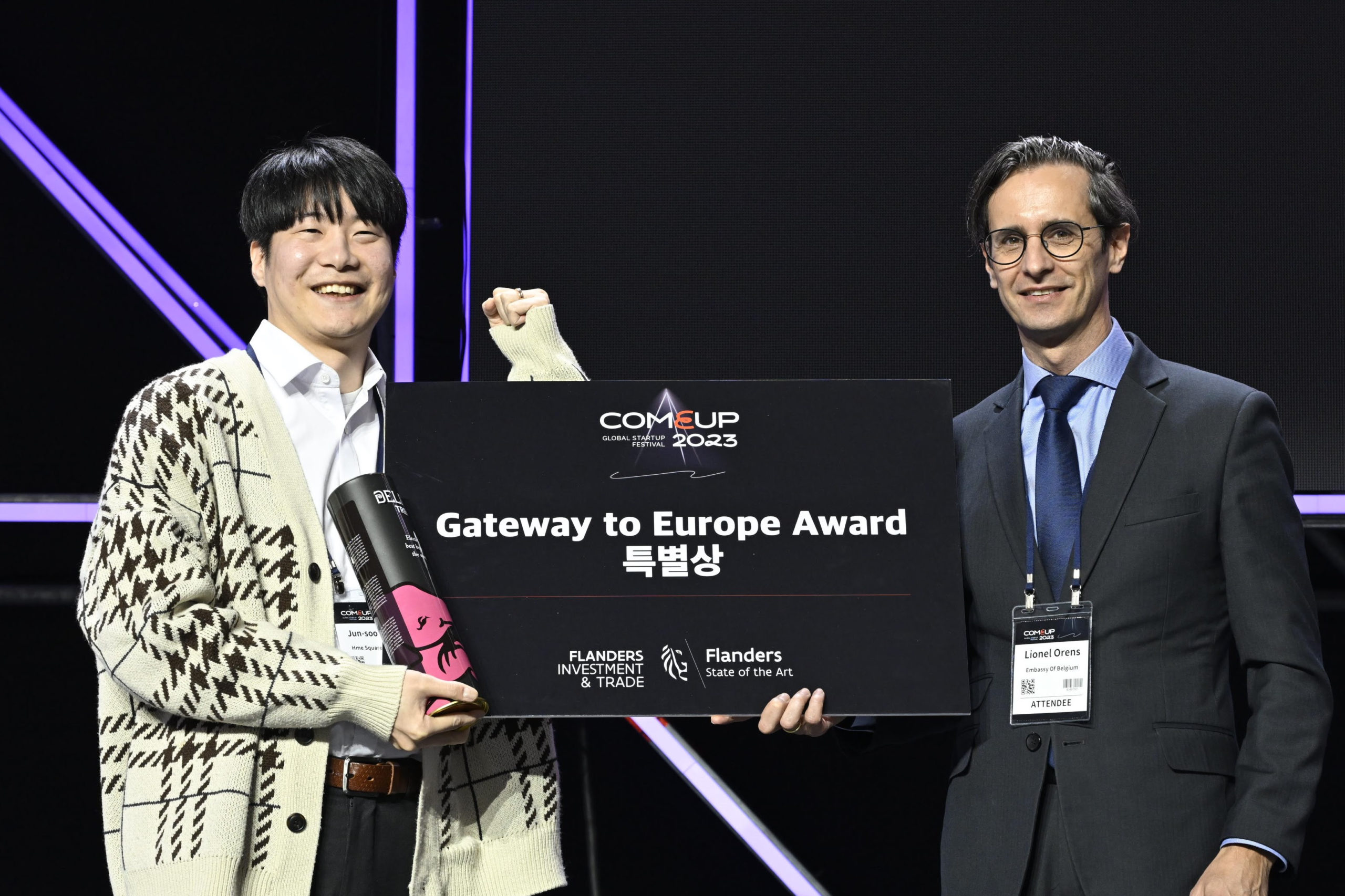 ‘컴업(COMEUP)’ 주관기관인 코리아스타트업포럼(이하 코스포)은 컴업스타즈 2023의 루키리그 경쟁 피칭에서 ‘Gateway to Europe Award’ 특별상을 받은 에이치엠이스퀘어가 수상 혜택으로 12월 11일~13일(현지시간)까지 3일간 벨기에 현지에서 유럽 진출 액셀러레이팅 프로그램에 참여한다.